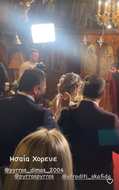 Με τα ιερά δεσμά του γάμου δέθηκαν ο Πύρρος Δήμας και η Αφροδίτη Σκαφίδα.