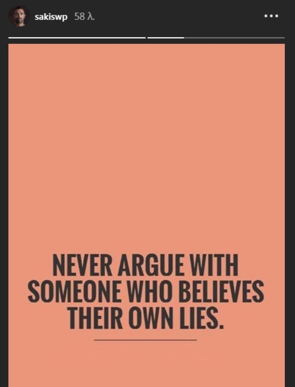Με μια ανάρτηση όλο νόημα στον προσωπικό του λογαριασμό στο Instagram ο Σάκης Τανιμανίδης φαίνεται πως δίνει τη δική του απάντηση στα όσα είπε ο Γιώργος Μαυρίδης στην εκπομπή της Ελεονώρας Μελέτη.