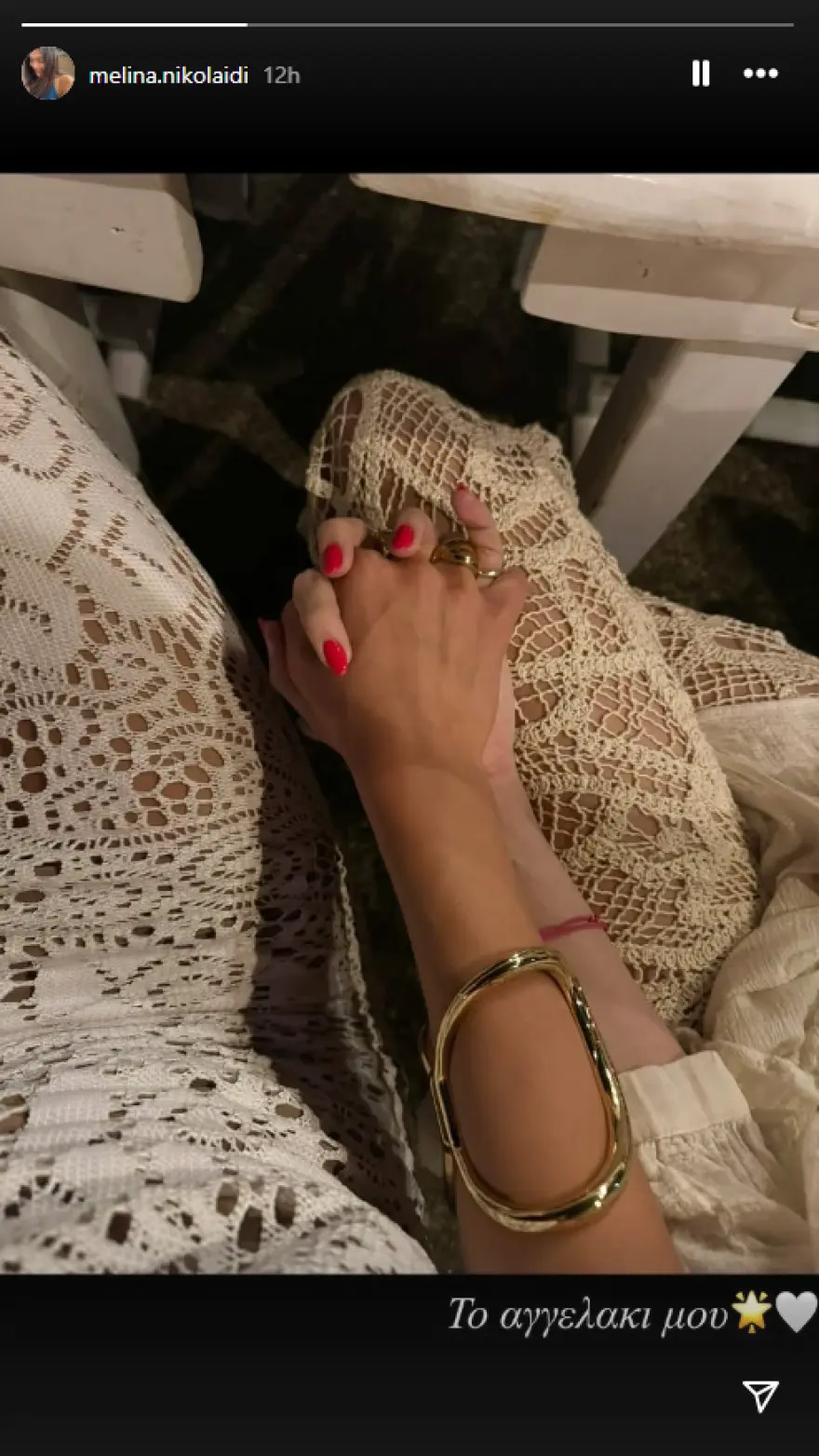 «Το αγγελάκι μου», έγραψε χαρακτηριστικά στο Instagram story που έκανε, ανεβάζοντας μία φωτογραφία που έδειχνε τα χέρια τους να κρατιούνται σφιχτά.