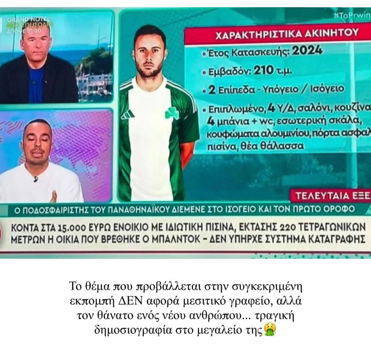 "Το θέμα που προβάλλεται στη συγκεκριμένη εκπομπή ΔΕΝ αφορά μεσιτικό γραφείο, αλλά τον θάνατο ενός νέου ανθρώπου..."