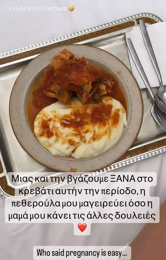 «Μίας και τη βγάζουμε ΞΑΝΑ στο κρεβάτι αυτήν την περίοδο, η πεθερούλα μου μαγειρεύει, όσο η μαμά μου κάνει τις άλλες δουλειές. Ποιος είπε ότι η εγκυμοσύνη είναι εύκολη…», έγραψε η Λάουρα Νάργες στην ανάρτησή της.