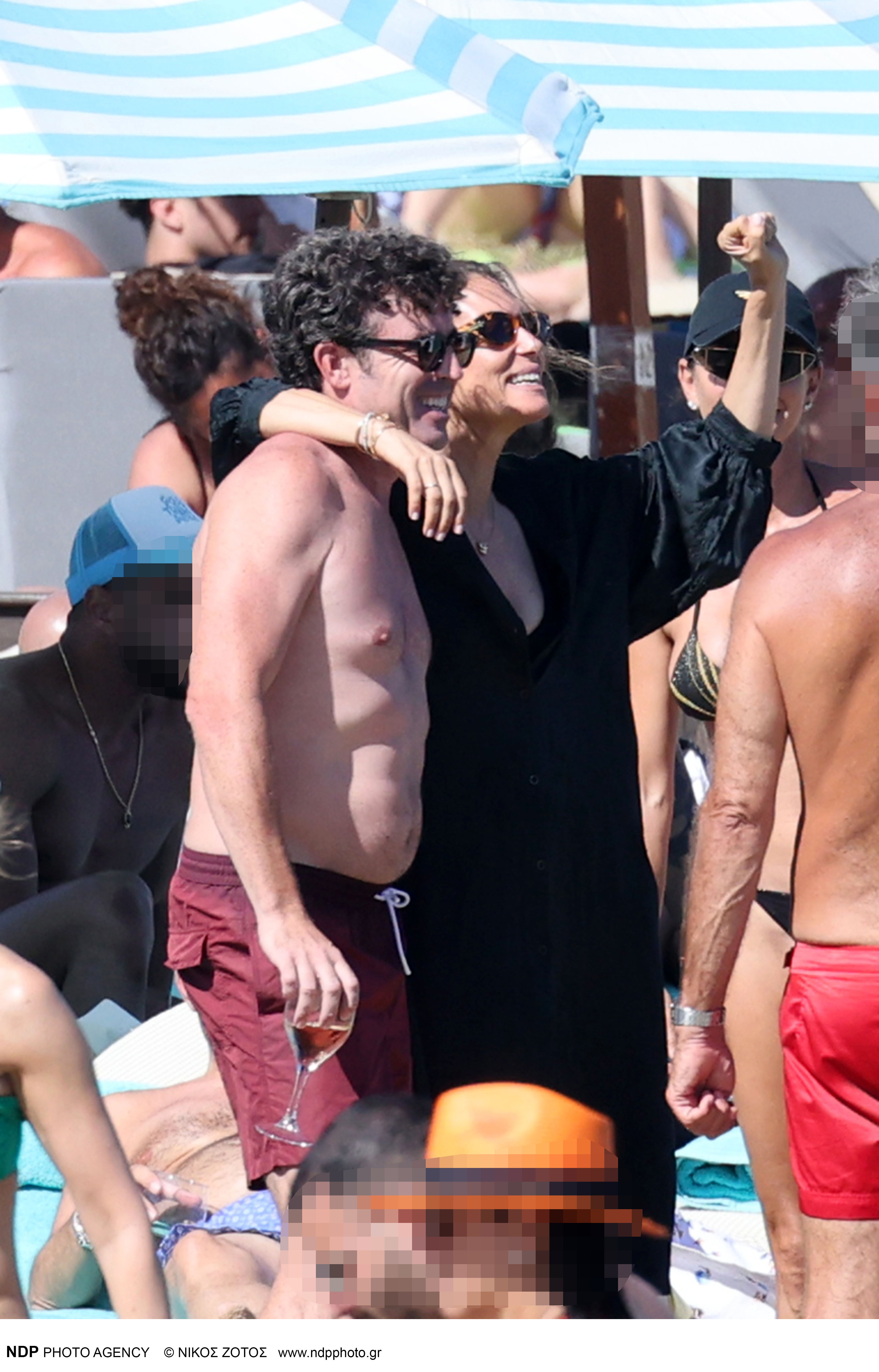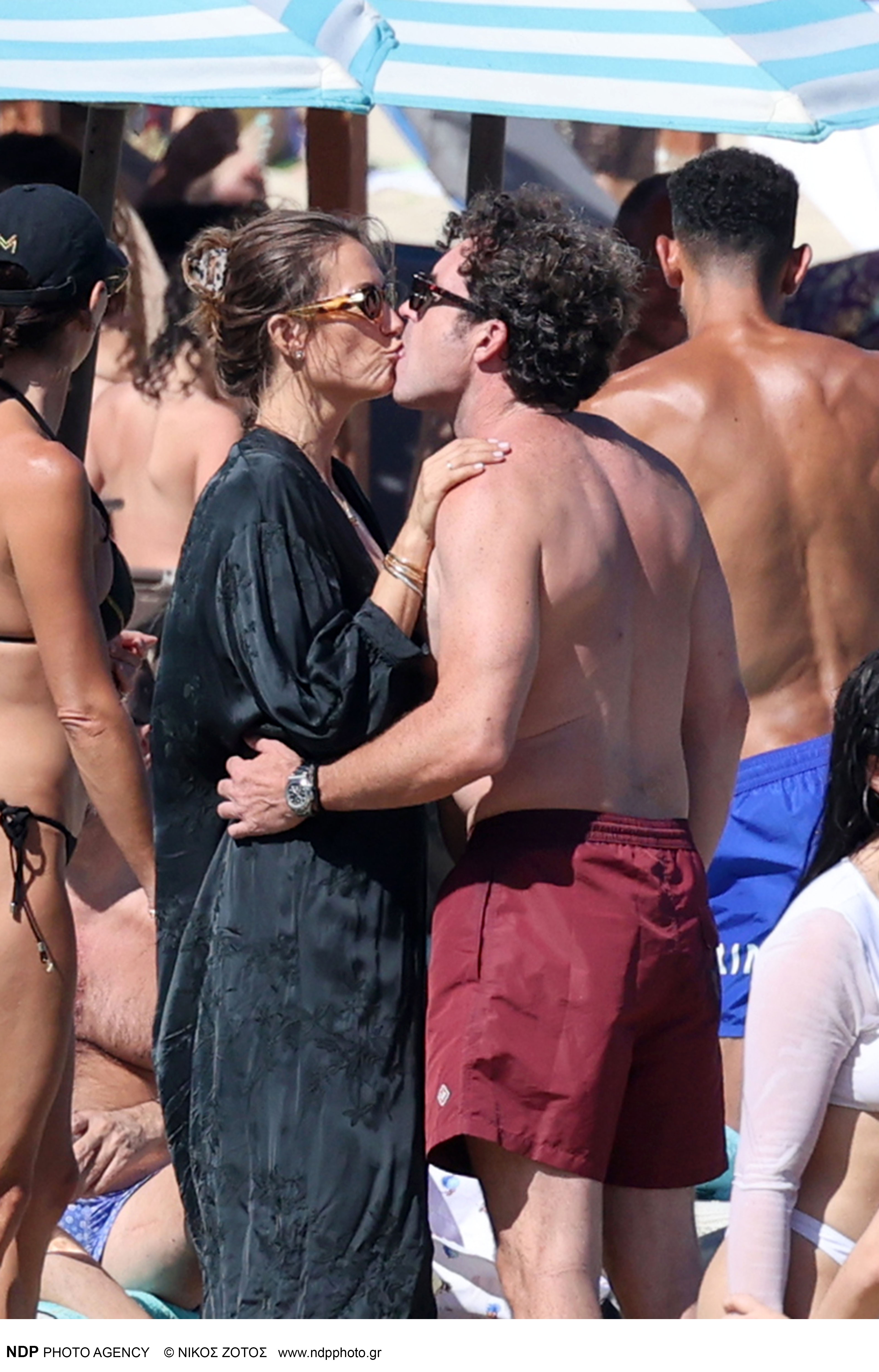 Το ερωτευμένο ζευγάρι το οποίο είναι παντρεμένο εδώ και 10 χρόνια, απαθανατίστηκε σε γνωστή παραλία του νησιού να διασκεδάζει να ανταλλάσσει μερικά τρυφερά φιλιά αδιαφορώντας για τα αδιάκριτα βλέμματα.