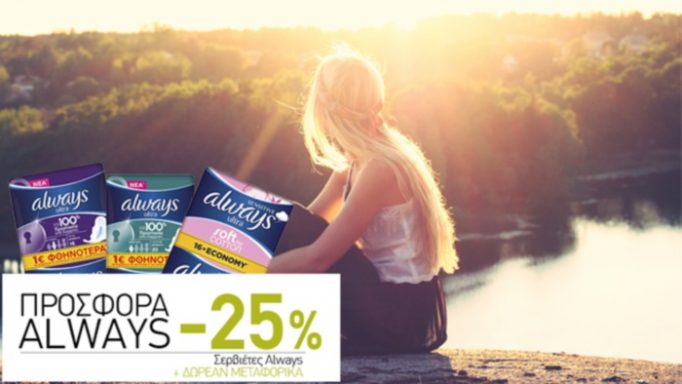 Uncategorized Σερβιέτες Always -25%, Fairy Caps 1+1 Δώρο, Χαρτιά Υγείας Zewa -25%, και πολλές ακόμη super Προσφορές με Δωρεάν Μεταφορικά! Τρίτη 14.06.16 18:35