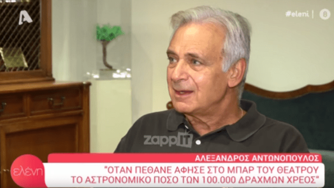 Entertainment Αλέξανδρος Αντωνόπουλος: «Όταν πέθανε η Παξινού άφησε ένα αστρονομικό χρέος 100.000 δρχ» Πέμπτη 10.10.19 15:13
