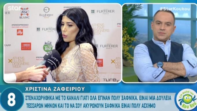 Entertainment Χριστίνα Ζαφειρίου: “Θα κινηθώ νομικά εναντίον του καναλιού, θα ζητήσω αποζημίωση!” Δευτέρα 01.04.19 10:38