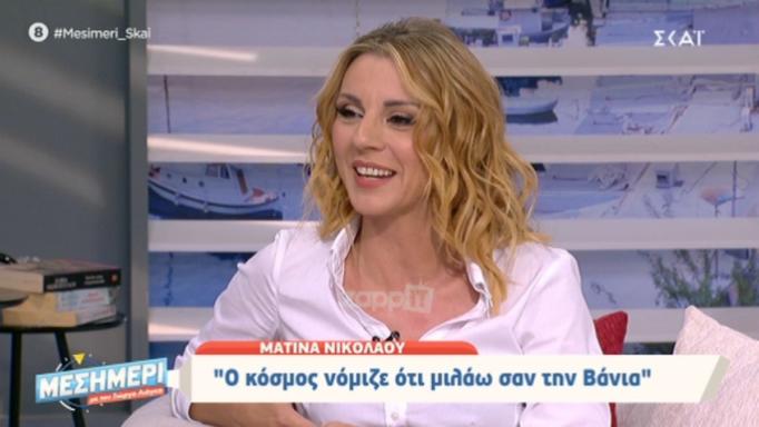 Entertainment Ματίνα Νικολάου: “Πολλοί νομίζουν ότι μιλάω σαν τη Βάνια και απογοητεύονται” Τρίτη 29.10.19 14:24