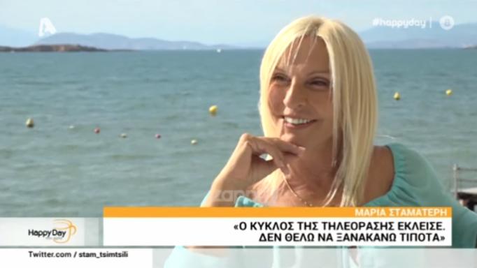 Entertainment Μαρία Σταματέρη: «Ο κύκλος της τηλεόρασης έκλεισε, δεν θέλω να ξανακάνω τίποτα» Παρασκευή 25.10.19 11:25