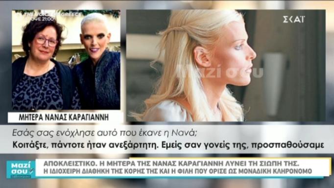 Ενημέρωση Νανά Καραγιάννη: Η μητέρα της “σπάει” τη σιωπή της για τη χειρόγραφη διαθήκη και τη μοναδική κληρονόμο Κυριακή 03.11.19 16:12