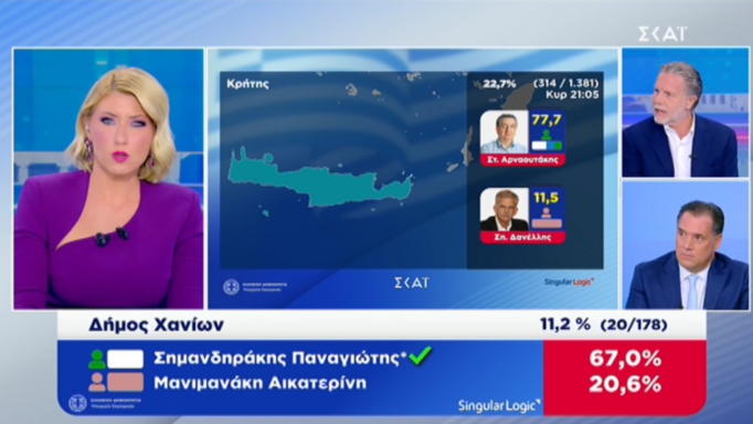 Ενημέρωση Εκλογές 2023 – Αιφνιδίασε τη Σία Κοσιώνη ο Παύλος Γερουλάνος: “Κάνετε την Κρήτη μπλε για κάποιο λόγο;” Κυριακή 08.10.23 21:25