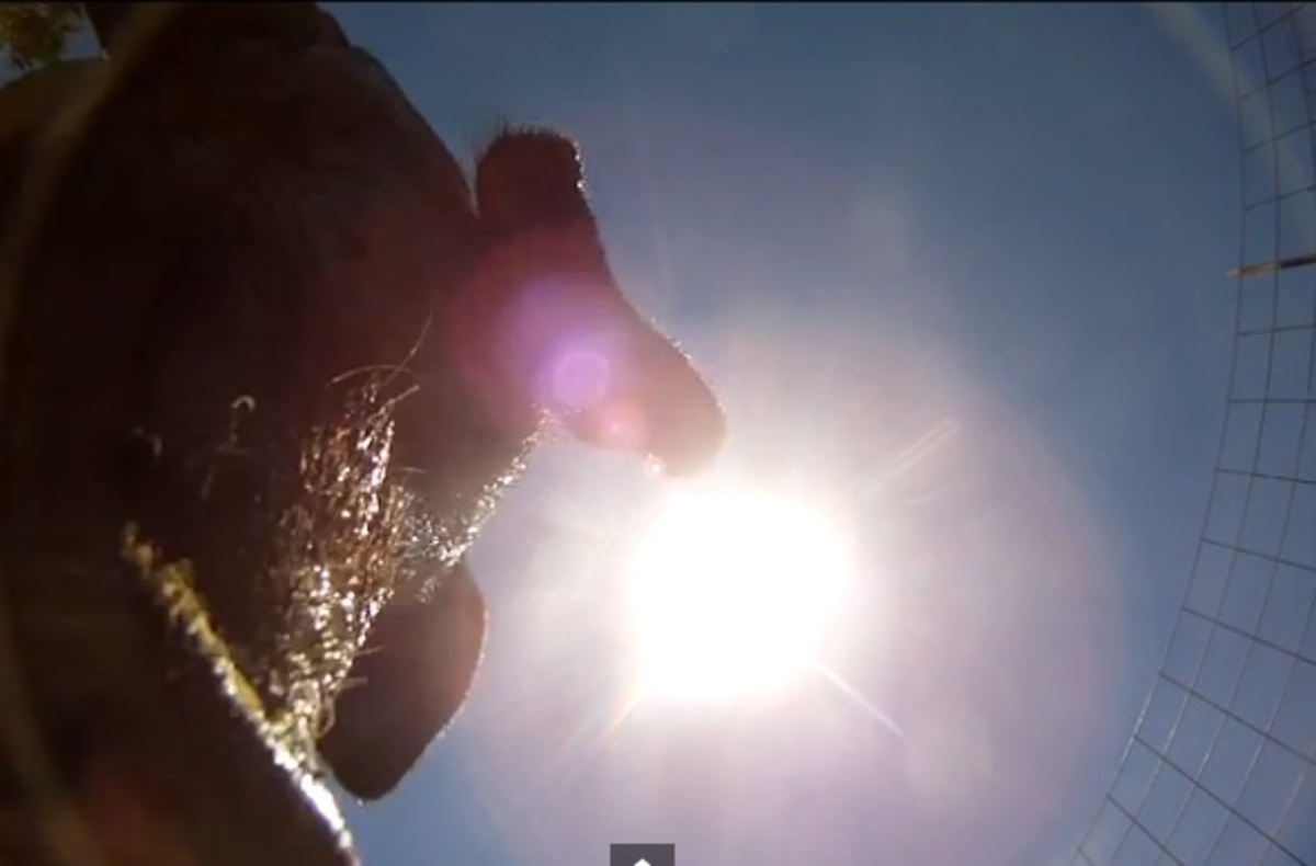 Η κάμερα κατέληξε σε μία φάρμα με γουρούνια… Και ένα από τα γουρουνάκια είπε να δοκιμάσει για να δει τι είναι!