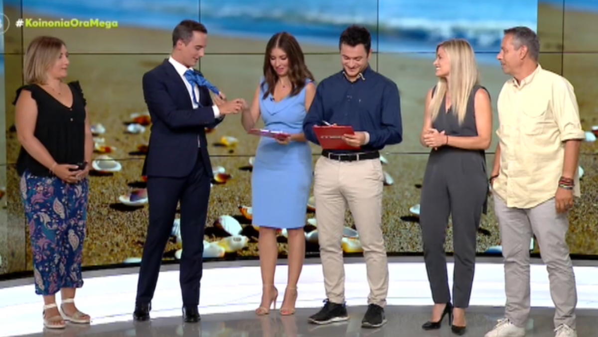Μάλιστα, στο τέλος ο παρουσιαστής έβγαλε τη γραβάτα του για να αλλάξει λίγο από το αυστηρό στυλ της ενημέρωσης. Άλλωστε, αυτή ήταν και μια παρέμβαση της Ματίνας Παγώνη σε προηγούμενη εκπομπή, που του είχε ζητήσει να αλλάξει λίγο το στυλ του.