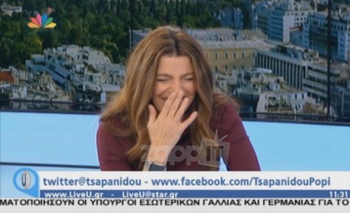 Νευρικό γέλιο έπιασε την Πόπη Τσαπανίδου στον αέρα της εκπομπής “Live U”. Η γνωστή παρουσιάστρια συζητούσε με την Αθηναϊδα Νέγκα για μια έρευνα που έχει γίνει, σχετικά με την απιστία των ανδρών. «Οι άντρες με πιο βαριά φωνή και οι γυναίκες με πιο τσιριχτή είναι πολύ πιθανό να απιστήσουν», είπε η Νέγκα και η Τσαπανίδου άρχισε να γελάει.