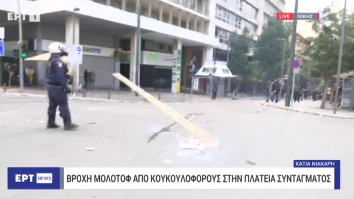 Η δημοσιογράφος στεκόταν στη γωνία Όθωνος και Φιλελλήνων, δίπλα σε αστυνομικούς, όταν από τη Μητροπόλεως άρχισαν ορισμένοι κουκουλοφόροι να πετούν αντικείμενα προς το μέρος της. Ένα καδρόνι, μάλιστα, πήγε κατευθείαν πάνω στη ρεπόρτερ και τον οπερατέρ.