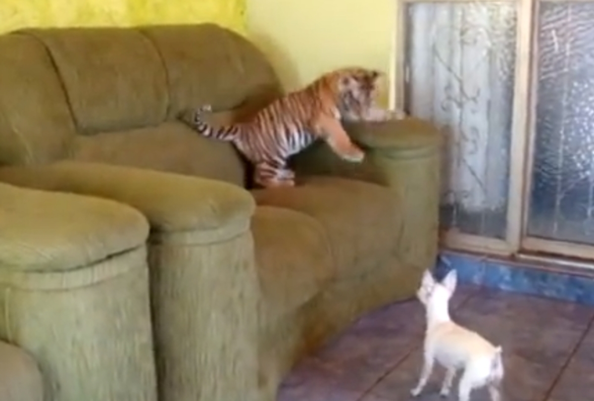 Το πιο περίεργο στο συγκεκριμένο βίντεο βέβαια δεν είναι ότι μια τίγρης μπορεί να παίζει με ένα κουτάβι, αλλά πως κάποιος έχει μία (μικρή έστω) τίγρη στο… σπίτι του.