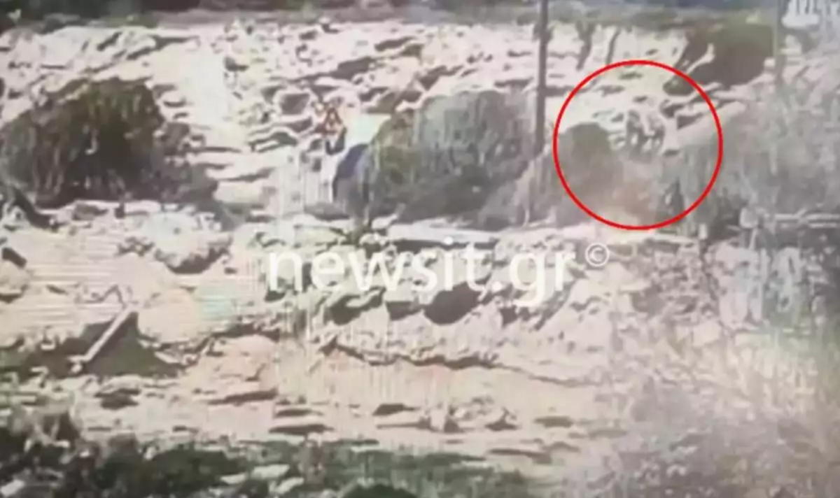 Στο βίντεο που εξασφάλισε το newsit.gr φαίνεται η μηχανή του Κωνσταντίνου Χρυσαύγη να περνάει, να χάνεται στους θάμνους και κλάσματα δευτερολέπτου αργότερα, φαίνεται το σώμα του στον αέρα πια, μετά τη θανατηφόρα σύγκρουση.