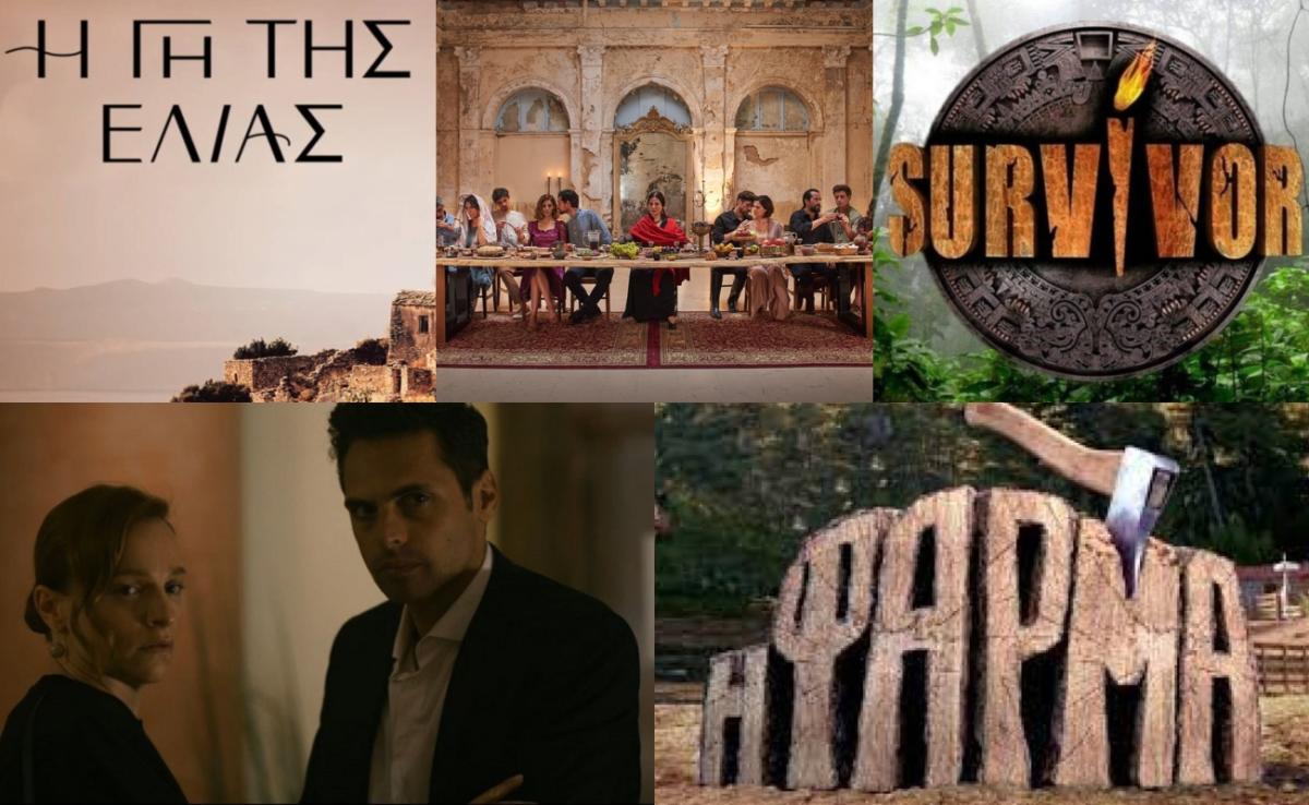 Στο γενικό σύνολο διατήρησε την πρωτιά ο Σασμός με 24,2%, το Survivor 22,7%, η Γη της Ελιάς 20,7%, η Σκοτεινή Θάλασσα 17,9% κι η Φάρμα 10,5%.