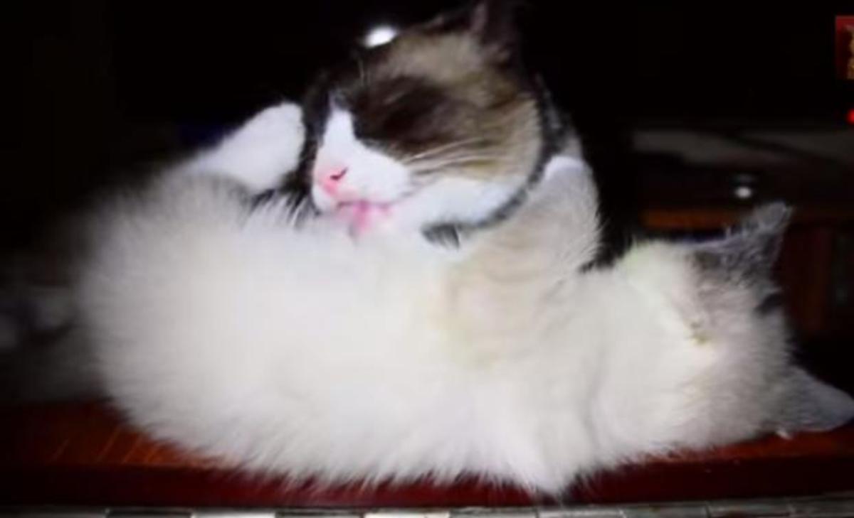 Η χαριτωμένη γάτα γλύφει μέχρι τελικής πτώσης τη μικρή που δείχνει να το απολαμβάνει. Όμως όταν λέμε πτώσης, το εννοούμε…