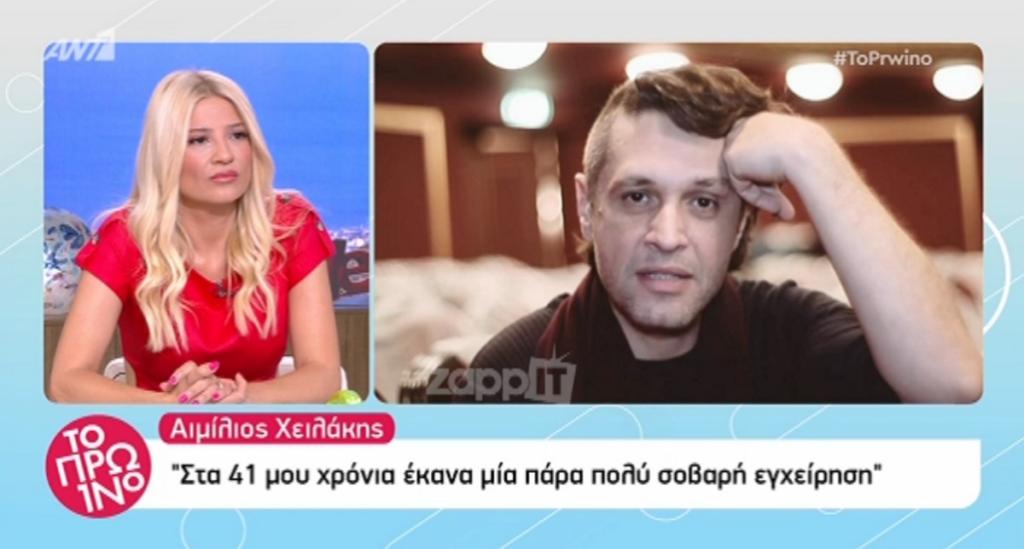Ο Αιμίλιος Χειλάκης εξομολογείται για πρώτη φορά για το σοβαρό πρόβλημα υγείας που αντιμετώπισε, όταν οι γιατροί εντόπισαν έναν όγκο στη βάση του κρανίου του. Ο ηθοποιός συγκλονίζει με όσα διηγείται στην εφημερίδα Τα Νέα και την Ζωή Λιάκα.