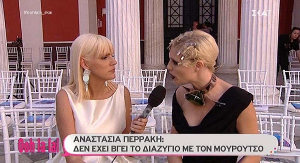 Η Σάσα Σταμάτη συνάντησε την Αναστασία Περράκη και δεν δίστασε να της κάνει ερωτήσεις όπως… αν έχει βγει το διαζύγιο της με τον Μιχάλη Μουρούτσο: “Δεν έχει βγει το διαζύγιο ακόμα. Να πούμε κάτι άλλο…”.