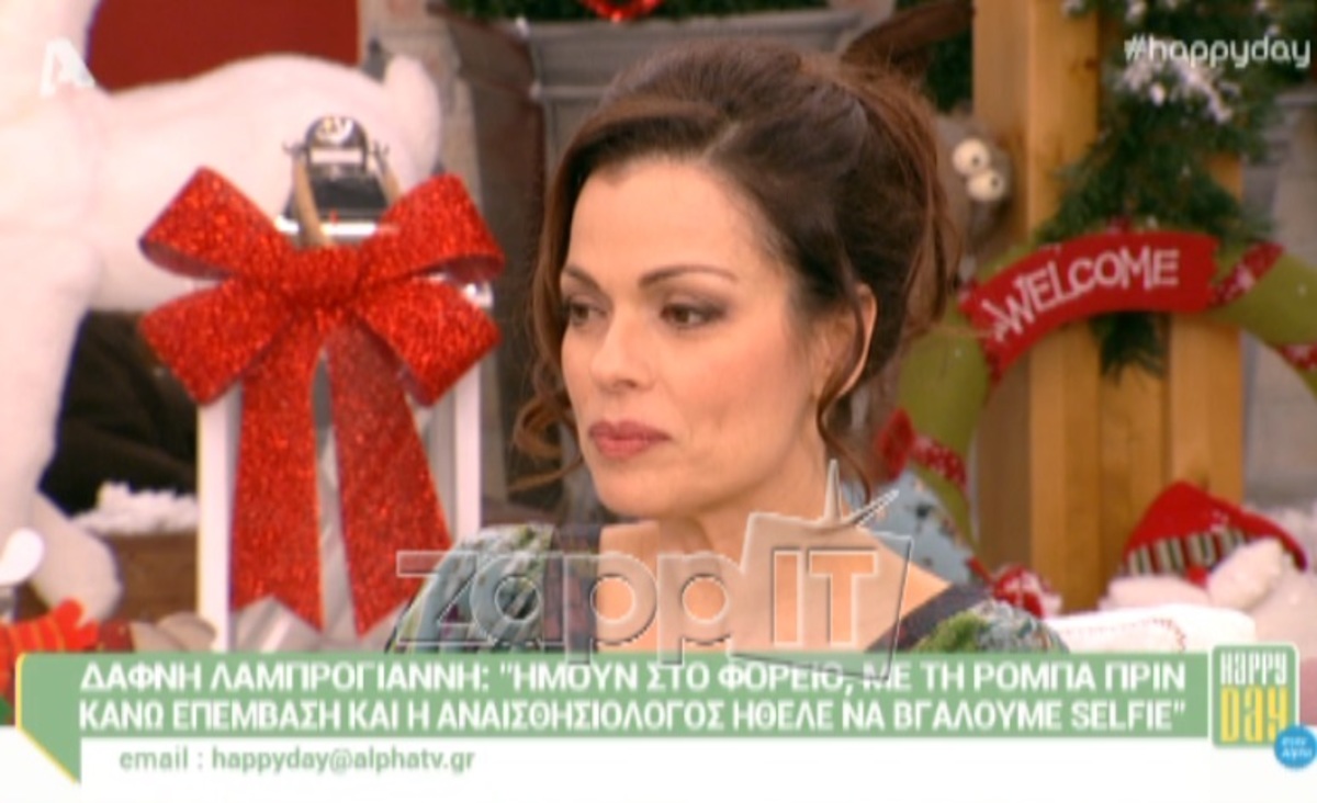 «Πήγα να κάνω μια επέμβαση πέρυσι και ήρθε μια αναισθησιολόγος, η οποία δεν ήταν δική μου, παραμέρισε όλους τους άλλους την ώρα που ήμουν στο φορείο πριν μπω στο χειρουργείο και φώναξε στη νοσοκόμα: “Φύγε από εκεί! Εγώ θα το κάνω αυτό”! Μου χώνει την βελόνα στο χέρι και μόλις τελειώνει αυτό μου λέει: “Τώρα έλα να βγάλουμε μια φωτογραφία”!», εξομολογήθηκε η Δάφνη Λαμπρόγιαννη.