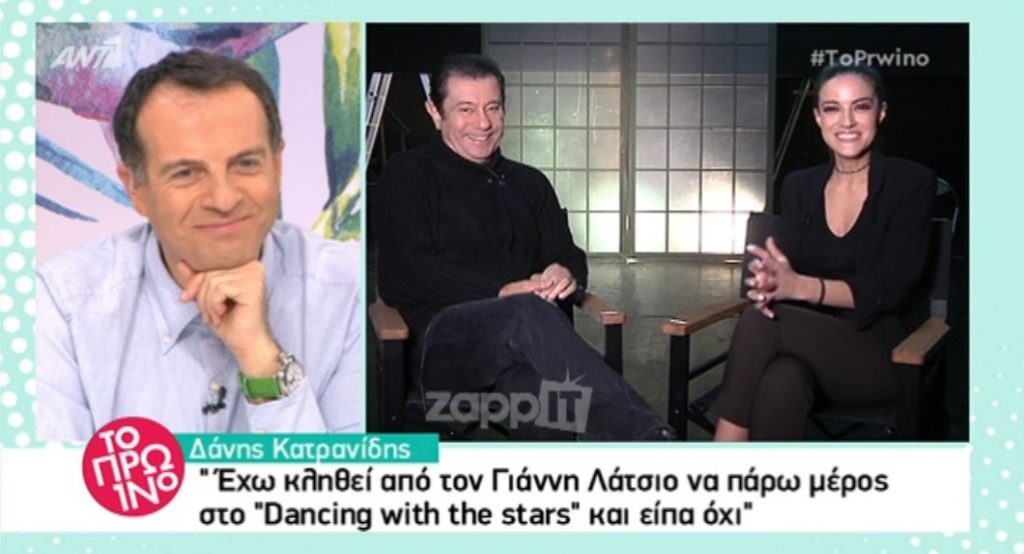 Έχω κληθεί από τον Γιάννη Λάτσιο να πάω στο Dancing With The Stars και είπα όχι. Νομίζω ότι έχει περισσότερο ενδιαφέρον όταν βρίσκεται κανείς στο ξεκίνημα της καριέρας του γιατί είναι μια ευκαιρία να προβληθεί”.