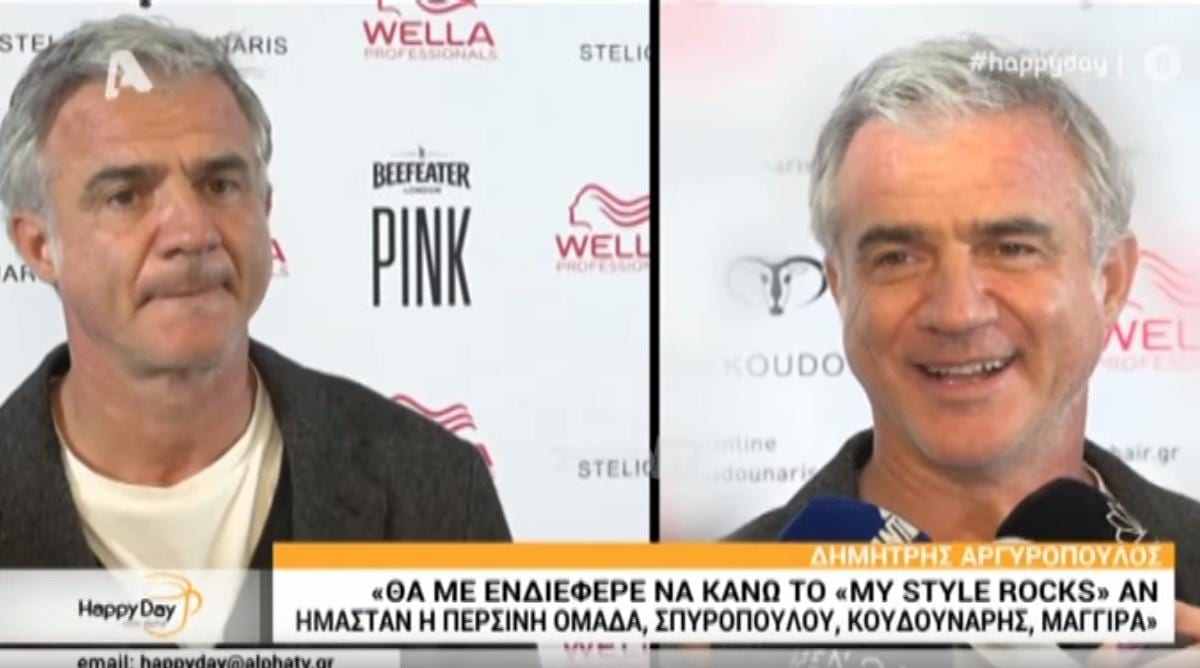 Τον Δημήτρη Αργυρόπουλο συνάντησε η κάμερα του Happy Day σε βραδινή του έξοδο. Ο γνωστός εκδότης αναφέρθηκε, μεταξύ άλλων, στο νέο κύκλο του My Style Rocks και στην πιθανότητα να τον δούμε εκ νέου στην κριτική επιτροπή.