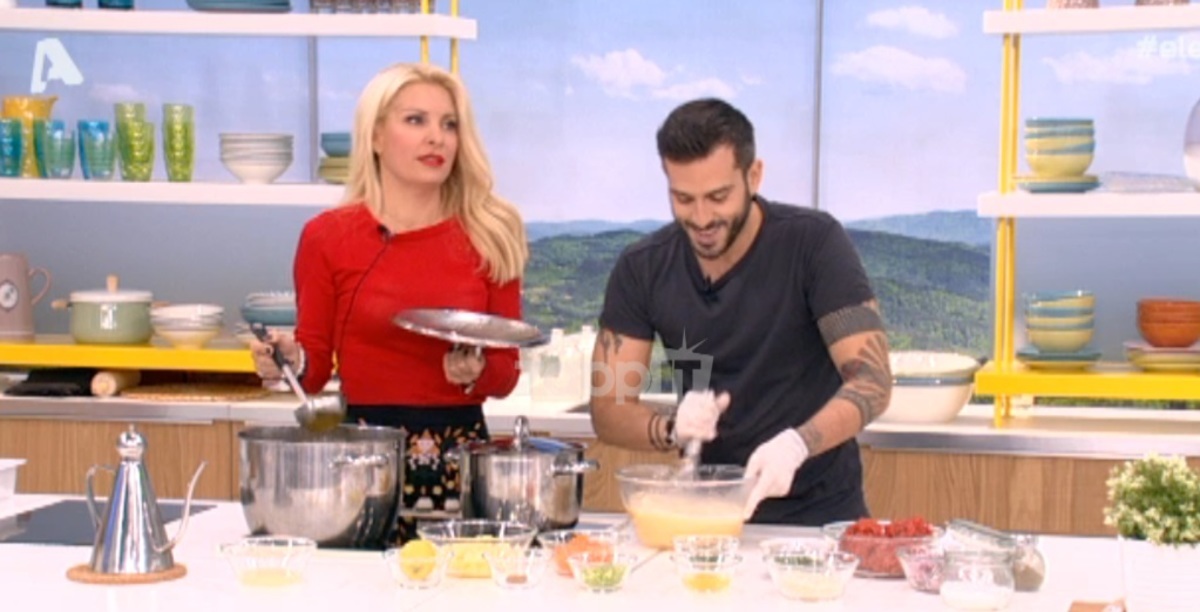 «Αυτό το κάνουν οι γιαγιάδες για να μη χάσουν το ρυθμό του χτυπήματος. Και θα σας πω και άλλη μια λέξη που έλεγε η γιαγιά μου» εξηγούσε ο σεφ της καθώς έστελνε φιλάκια στο φαγητό.