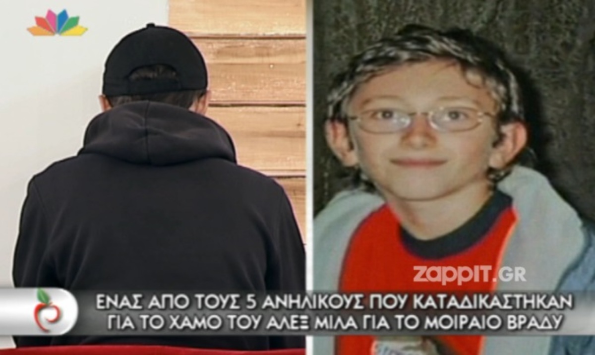 Ένα από τα παιδιά που ήταν μαζί του το μοιραίο βράδυ και καταδικάστηκαν για τον χαμό του Άλεξ βρέθηκε σήμερα στο πλατό του Μίλα. Ο Αλέξανδρος “έσπασε” τη σιωπή του και εξομολογήθηκε στην Τατιάνα τα συναισθήματά του και πως εξελίχθηκε η ζωή του μέσα σε αυτά τα χρόνια καθώς οι συνέπειες της πράξης αυτής ήταν πολύ σοβαρές και για τον ίδιο.