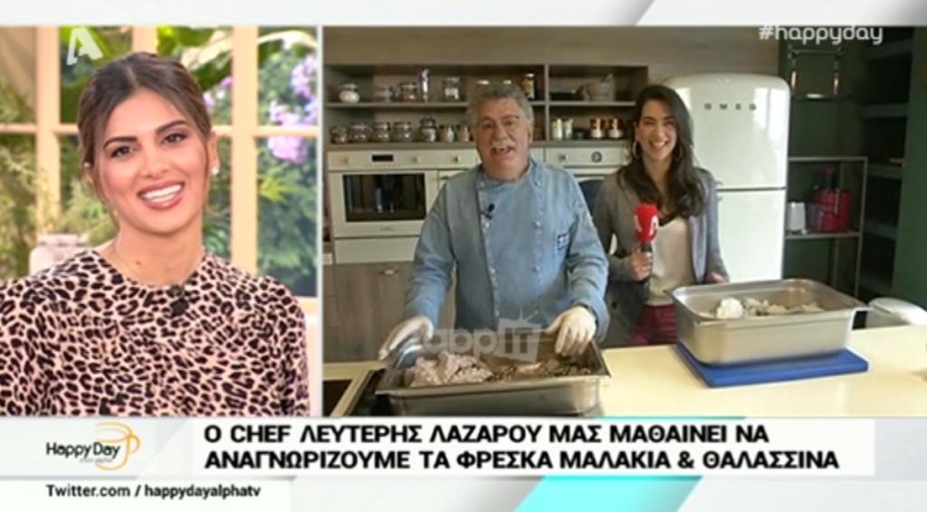 Με καλεσμένο τον Λευτέρη Λαζάρου στο Happy Day της Μεγάλης Τετάρτης, λίγο πριν το τέλος της σύνδεσης, η Σταματίνα Τσιμτσιλή θέλησε να ρωτήσει τον βραβευμένο chef αν γνωρίζει σχετικά με τον εγκέφαλο γαρίδας. Ο Λευτέρης Λαζάρου ρώτησε αρχικά απορημένος: “Εγκέφαλο γαρίδας”; Στη συνέχεια γέλασε χαρακτηριστικά και είπε: “Δεν ξέρω, δεν γνωρίζω! Σηκώνω τα χέρια ψηλά! Σηκώνω τα χέρια ψηλά”!