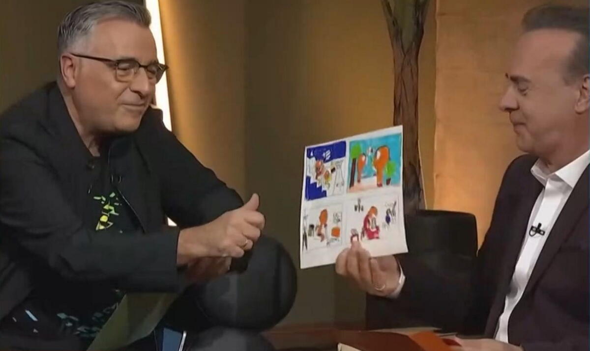 Συγκεκριμένα, ο Γιώργος Κουβαράς τού έδωσε κάποιες ζωγραφιές του γιου του και μάλιστα με αφιέρωση.