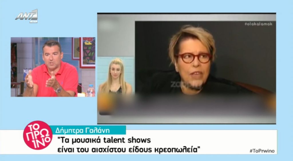 Με αφορμή τα όσα δήλωσε η Δήμητρα Γαλάνη ότι «Τα μουσικά talent shows είναι του αισχίστου είδους κρεοπωλεία. Είναι να σαν κρεμάνε σφαχτάρια και να περιμένουμε να τους βγάλουν το δέρμα», ο Γιώργος Λιάγκας πήρε θέση στο “Πρωινό και τοποθετήθηκε κατά των δηλώσεων της τραγουδίστριας.