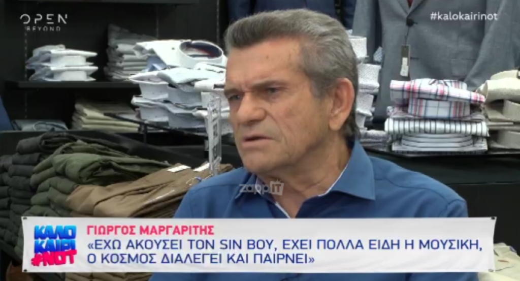 Ο Γιώργος Μαργαρίτης μίλησε για όλα στο Καλοκαίρι #not. Ερωτηθείς για τον Sin Boy, είπε: “Έχω ακούσει τον Sin Boy. Είναι ωραίο και το ραπ. Έχει πολλά είδη η μουσική και ο κόσμος διαλέγει και παίρνει”.