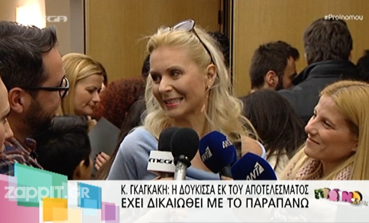 Η Κατερίνα Γκαγκάκη σχολίασε στους δημοσιογράφους τη νέα τηλεοπτική συνεργασία της Ζέτας Μακρυπούλια με το MEGA: «Εύχομαι ότι καλύτερο! Καλή επιτυχία! Δε νομίζω ότι τίθεται ζήτημα του πόσο καλή παρουσιάστρια είναι η Ζέτα. Για μένα είναι μία από τις παρουσιάστριες που έχουν ξεχωρίσει πάρα πολύ. Είναι εξαιρετική, είναι ωραίος ανταγωνισμός, είναι θεμιτός ανταγωνισμός, άμυλα κι επειδή τη βλέπω και εκτός εύχομαι όλα τα καλά».