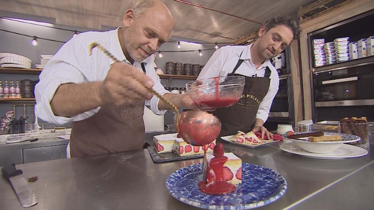 Ο Στέλιος Παρλιάρος φτιάχνει δύο υπέροχα γλυκά για το τραπέζι του Πάσχα. Πρωταγωνίστρια, η βασίλισσα της άνοιξης: η ζουμερή και λαχταριστή φράουλα. Μια ελαφριά σούπα φράουλας, συνοδευόμενη από τραγανά μπισκότα από φυστίκι Αιγίνης, και με μια πλούσια φραουλένια τούρτα, που αναδεικνύει με τον καλύτερο τρόπο όλα τα αρώματα και τη γλύκα του αγαπημένου φρούτου.