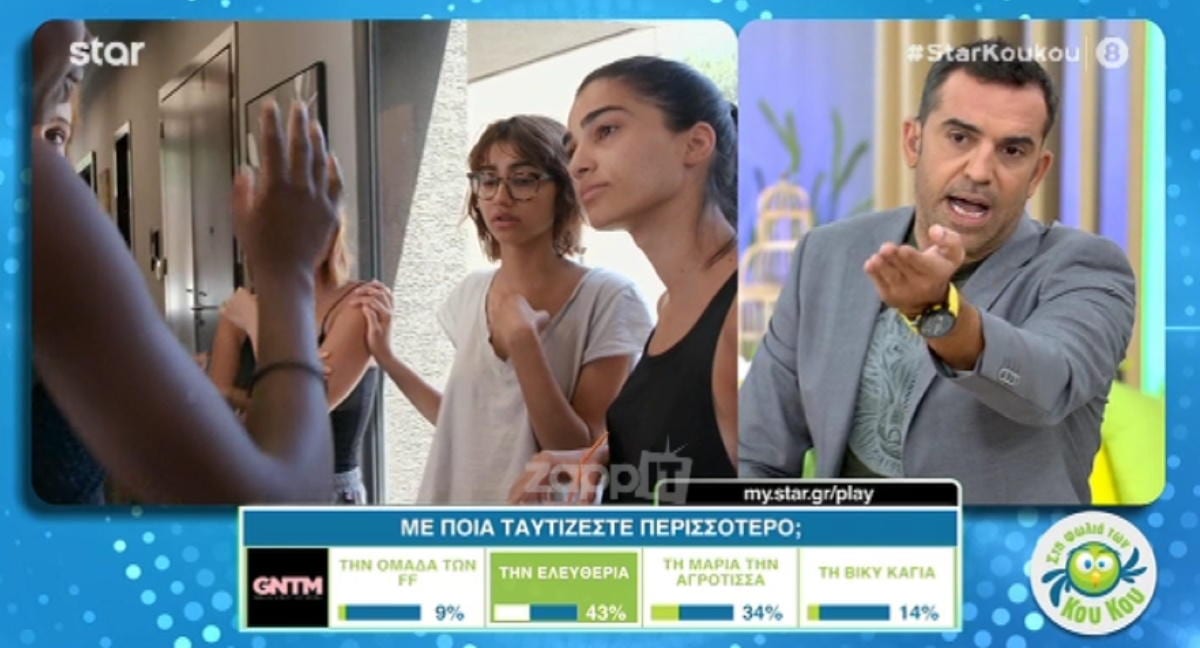 Τα αποσπάσματα από το GNTM έπαιξαν Στη φωλιά των Κου Κου και ο Στέφανος Κωνσταντινίδης βγήκε από τα ρούχα του! “Η Ελευθερία δεν έχει σηκώσει στην προσωπική της ζωή, όχι το εσώρουχό της, ούτε το χαρτομάντιλο όταν έχει συνάχι. Τα κορίτσια έχουν απηυδήσει! Από πόσο χρονών μαζεύεις το εσώρουχό σου; Όταν δεν μαζεύουν τα παιδιά τα παιχνίδια τους από το σαλόνι, βιώνουμε καθημερινούς καβγάδες στο σπίτι, όχι για το βρακάκι της Ελευθερίτσας”!