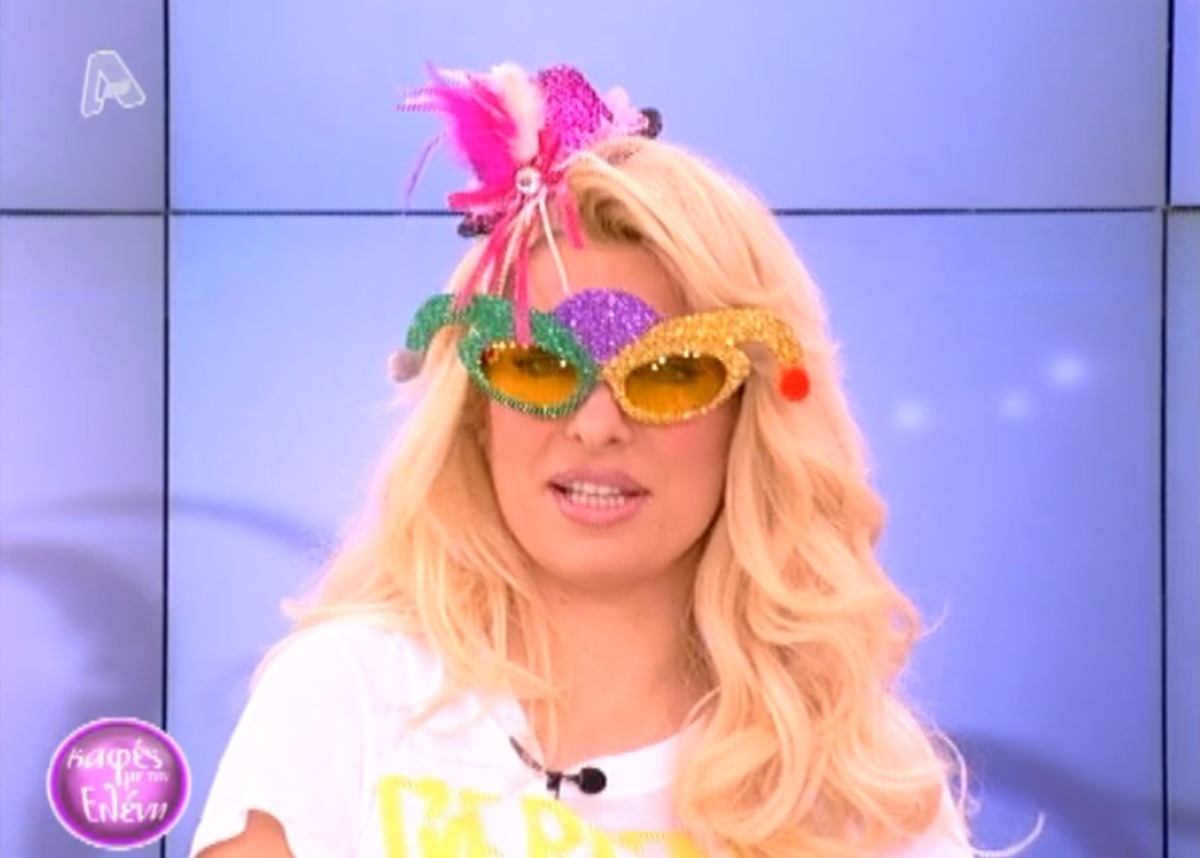 Όλοι στην εκπομπή φόρεσαν αποκριάτικα αξεσουάρ, ακόμα και οι τεχνικοί. Η Ελένη τους παρουσίασε έναν προς έναν πριν φορέσει και αυτή τα δικά της. Λεπτομέρεια η φράση της Ελένης: “Έχω εορταστική διάθεση. Τη χάνω καμιά φορά, αλλά πρέπει να συμβαίνουν πολύ σοβαρά πράγματα”…