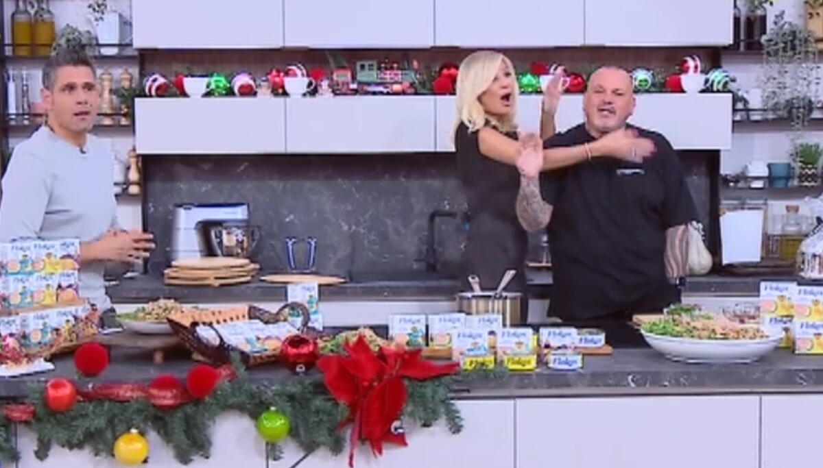Αυτό το πρωινό, λοιπόν, αφορμή στάθηκε η διάθεση της παρέας της ψυχαγωγικής εκπομπής να απολαύσει μπισκότα λίγο πριν η Φαίη Σκορδά και ο Δημήτρης Ουγγαρέζος συναντήσουν τον γνωστό σεφ στην κουζίνα του.