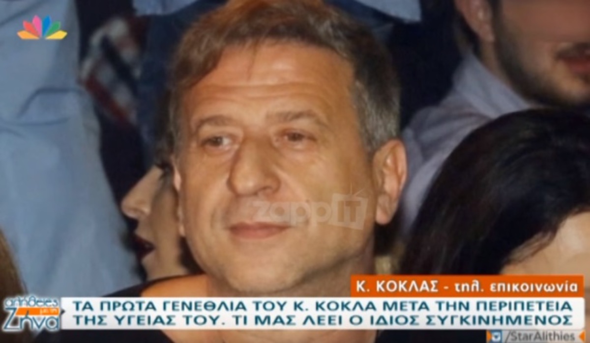 Τα πρώτα του γενέθλια μετά την περιπέτεια με την υγεία του γιόρτασε ο Κώστας Κόκλας σε ένα πάρτυ έκπληξη που του ετοίμασαν οι φίλοι του. Ο Κώστας Κόκλας πριν λίγο καιρό υπέστη έμφραγμα κατά τη διάρκεια παράστασης και νοσηλεύτηκε στο νοσοκομείο “Άγιος Παύλος”. Χθες, ο δημοφιλής ηθοποιός έκλεισε τα 50 του χρόνια και οι φίλοι του Μάνος Ιωάννου, Χριστίνα Πολίτη, Τόνυ Δημητρίου, Άλκης Κούρκουλος και πολλοί άλλοι του ετοίμασαν ένα πάρτυ έκπληξη. Όσο για την τούρτα, αυτή έγραφε: “Ξενύχτια, ποτά, τσιγάρα μόνο για τους φίλους σου!”, έχοντας πάνω μια καρδιά. Για την έκπληξη αυτή μίλησε ο Κώστας Κόκλας στην εκπομπή «Αλήθειες με τη Ζήνα»: «Ωραία περάσαμε, είδα τους φίλους μου μετά από καιρό. Τα παιδιά μου έφτιαξαν μια τούρτα, τα είχαν οργανώσει όλα. Νιώθω ότι είμαι τυχερός. έχω πολλούς φίλους και έχω καλούς φίλους που είναι χρόνια κοντά μου και με αγαπάνε πραγματικά. Μου το έχουν αποδείξει. Μετά από αυτά που πέρασα είναι καλή ευκαιρία να αναθεωρήσεις λίγο τον τρόπο ζωής, να προσέχεις πιο πολύ τον εαυτό σου.»