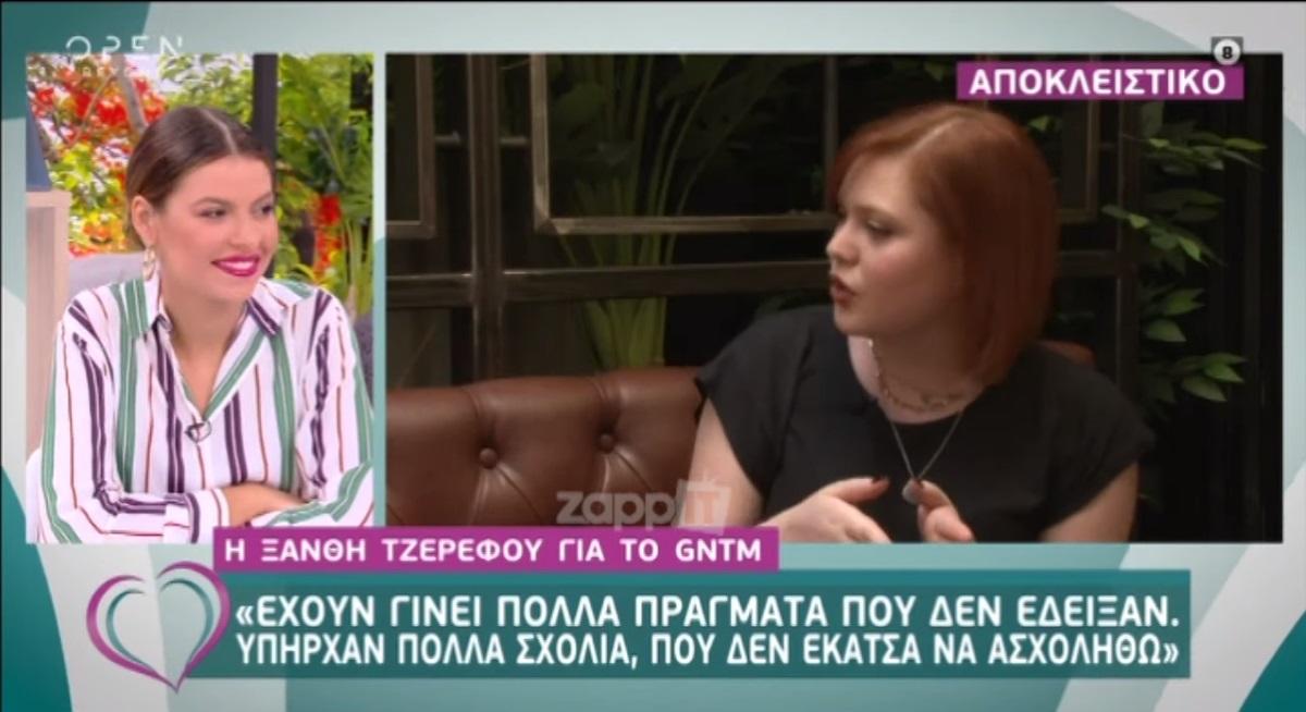 Στην εκπομπή “Ευτυχείτε” έδωσε συνέντευξη η Ξανθή Τζερεφού, η οποία μίλησε και για τη δική της εμπειρία στο GNTM. Αναφέρθηκε στο καλό που της έκανε το παιχνίδι και πλέον είναι αρκετά αναγνωρίσιμη, ενώ τόνισε πως είχαν γίνει περιστατικά μέσα στο σπίτι που δεν τα “πήραν” οι κάμερες.