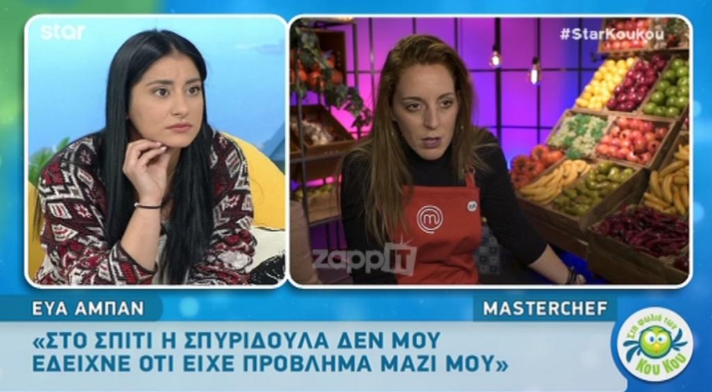 Μετά την οριστική αποχώρησή της από το MasterChef 3, η Εύα Αμπάν βρέθηκε Στη φωλιά των Κου Κου. Η Σπυριδούλα Καραμπουτάκη και η συμπεριφορά της απέναντι στην παίκτρια ήταν αυτό που απασχόλησε περισσότερο τη συζήτηση της Εύας με την Κατερίνα Καραβάτου και τον Κρατερό Κατσούλη. Η Εύα Αμπάν δήλωσε σοκαρισμένη όταν άκουσε τις δηλώσεις της Σπυριδούλας, καθώς δεν είχε ιδέα. Συγκεκριμένα, είπε τα εξής: