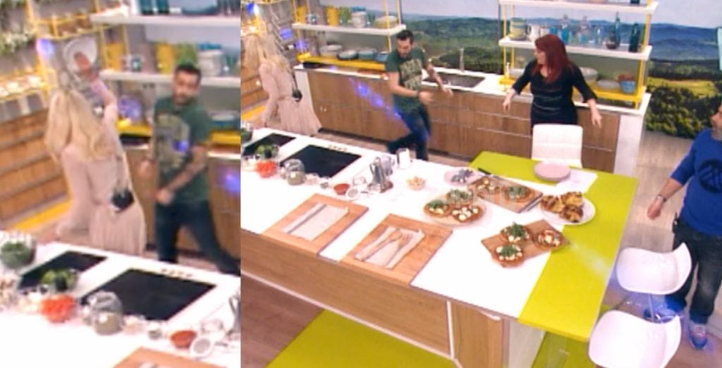 Ίσα που πρόλαβε να απομακρυνθεί ο Γιώργος Τσούλης, ενώ ο Γρηγόρης Γκουντάρας ήταν αυτός που μάζεψε τα σπασμένα.
