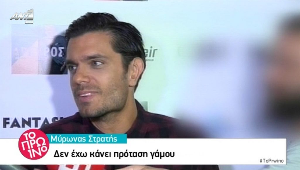Ο Μύρωνας Στρατής συνάντησε τους ρεπόρτερ κι εκείνοι είχαν πολλές ερωτήσεις να του κάνουν. Κάποιες από αυτές έφεραν σε πολύ δύσκολη θέση τον τραγουδιστή. Όπως για παράδειγμα, αν έχει κάνει πρόταση γάμου σε κοπέλα και αν του έχει γεννηθεί η επιθυμία να κάνει παιδί.