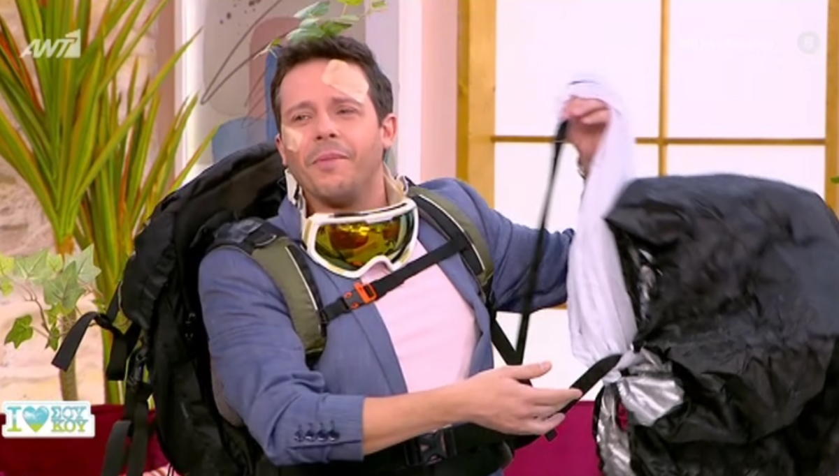 Η σημερινή εκπομπή ξεκίνησε χωρίς τον Δημήτρη Μακαλιά, ο οποίος έφτασε λίγο αργότερα στο πλατό ως… αλεξιπτωτιστής!