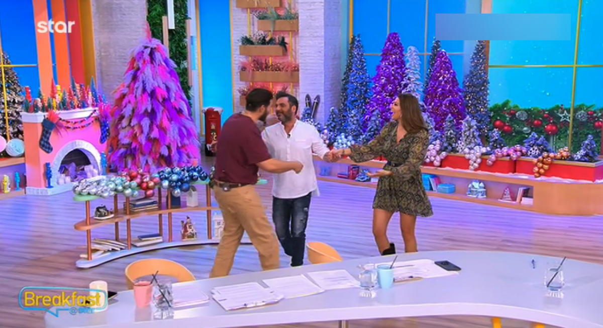 “Ερχόσουν εδώ κάθε μέρα, πώς σου φαίνεται;”, ρώτησε ο Ετεοκλής Παύλου. “Λίγο περίεργα, λίγο άγχος”, απάντησε ο Γιώργος Καρτελιάς και λίγο αργότερα άρχισαν οι ερωτήσεις για την Ελίνα Παπίλα και τη συνύπαρξή τους στο Breakfast@Star.