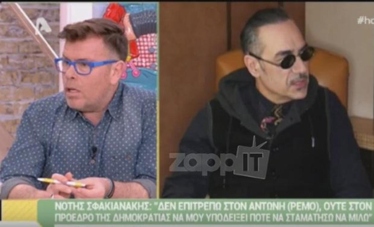 Η συνέντευξη του Νότη Σφακιανάκη στον Τάσο Τρύφωνος έχει προκαλέσει μεγάλες αντιδράσεις, σχετικά με τα όσα είπε ο ίδιος για τους πρόσφυγες. Στο Happy Day πρόβαλαν ένα βίντεο με τις δηλώσεις του γνωστού τραγουδιστή, με τον Δημήτρη Παπανώτα να κάνει λόγο για… φέσι της Χρυσής Αυγής.