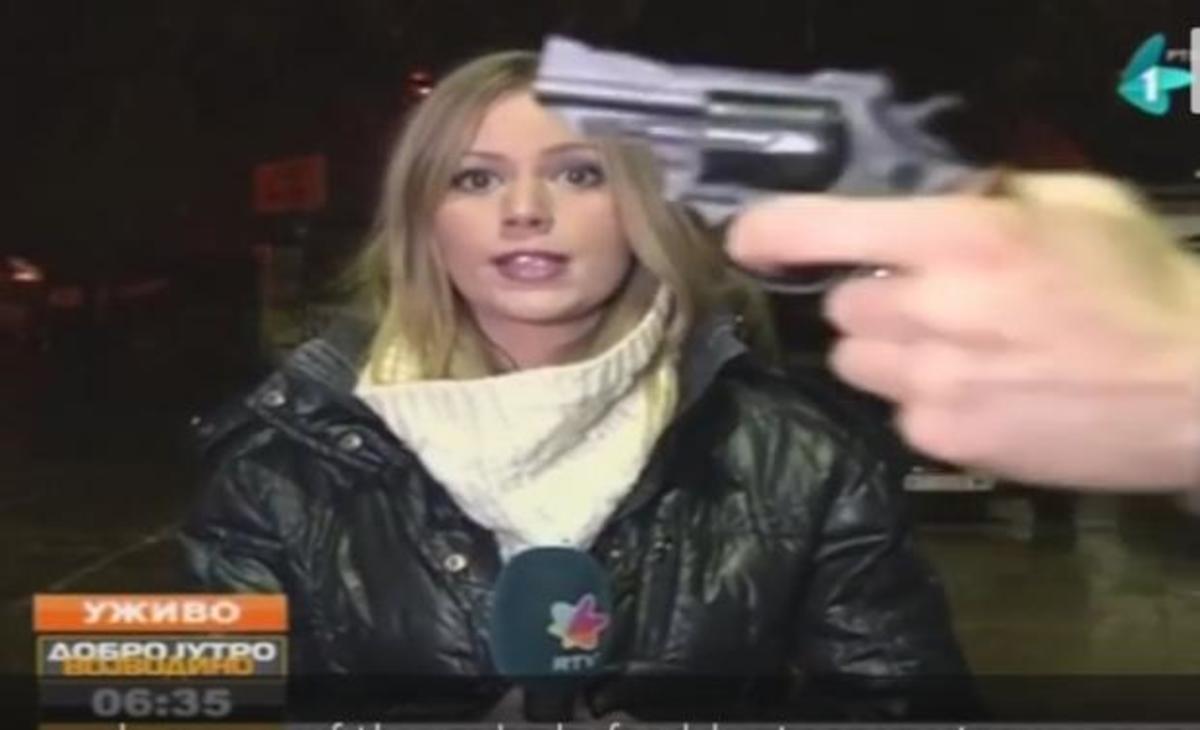Ένα απίστευτο περιστατικό σημειώθηκε κατά τη διάρκεια ζωντανού ρεπορτάζ για την κακοκαιρία στη γειτονική Σερβία. Συγκεκριμένα, μια νεαρή ρεπόρτερ του τηλεοπτικού δικτύου RTV που βρισκόταν στον δρόμο, συνομιλούσε on camera με την παρουσιάστρια και σε ανύποπτη στιγμή εμφανίστηκε στις οθόνες ένα όπλο.
