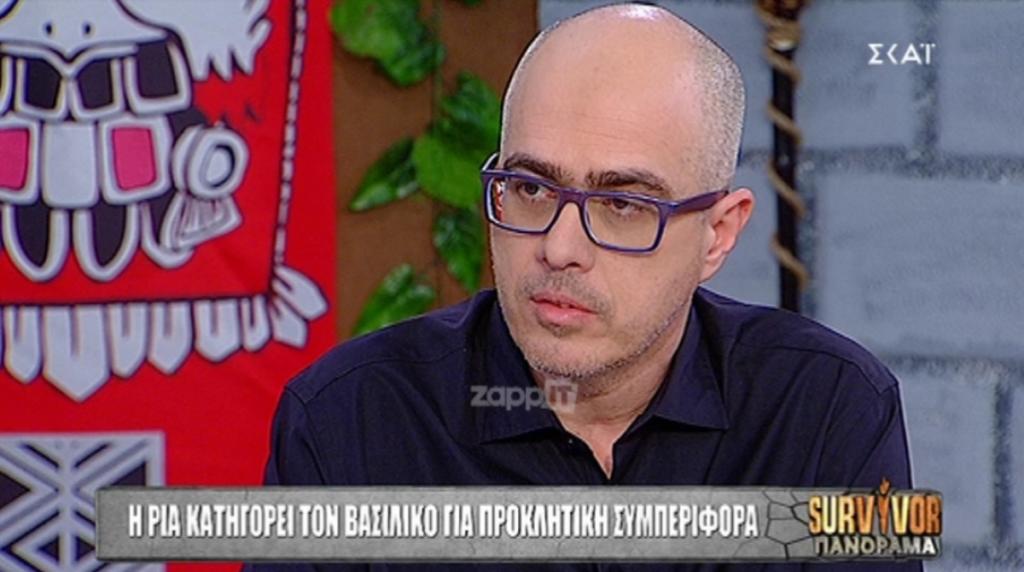 Έξαλλος έγινε ο Βαγγέλης Χαρισόπουλος στο Survivor Πανόραμα, όταν συζήτησαν το θέμα που δημιουργήθηκε με τον Βασίλη Βασιλικό και τη Ρία Κολοβού.