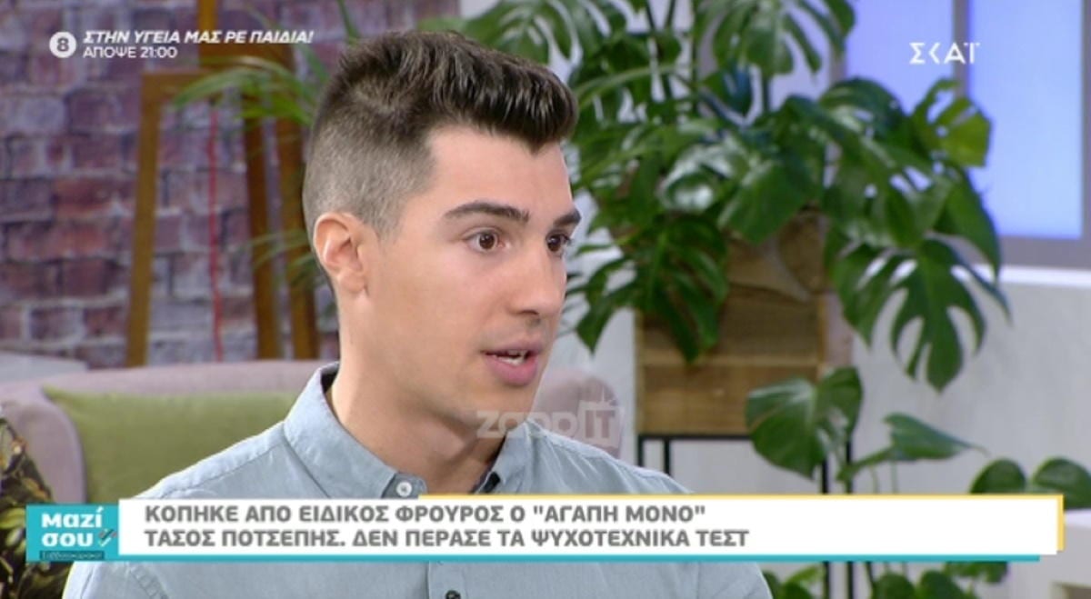Ο Τάσος Ποτσέπης, γνωστός και ως «αγάπη μόνο», κόπηκε από την αρμόδια Υγειονομική Επιτροπή της ΕΛΑΣ, η οποία τον έκρινε ακατάλληλο για να ενταχθεί στο σώμα της Ελληνικής Αστυνομίας ως Ειδικός Φρουρός. Ο ίδιος, είχε συγκεντρώσει πολύ υψηλή βαθμολογία στην πρώτη φάση, όμως δεν πέρασε την ψυχολογική αξιολόγηση. Αντίθετα, ο αδερφός του Κωνσταντίνος, πέρασε.
