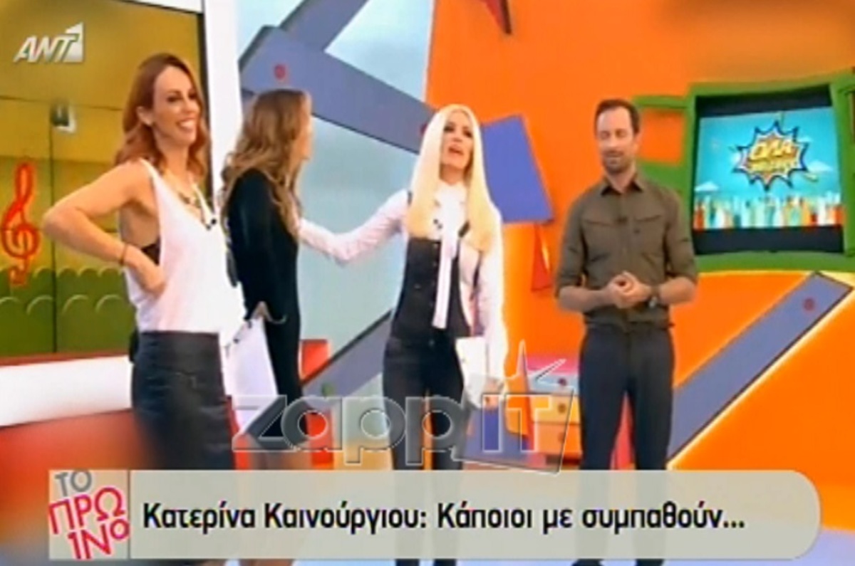 Το σίριαλ της συνεργασίας της Κατερίνας Καινούργιου με το “Όλα Πάιζουν” συνεχίζεται, το ίδιο και όσα γράφονται και λέγονται μετά την κόντρα της παρουσιάστριας με την υπεύθυνη της εκπομπής. Χθες, η Κατερίνα Καινούργιου πέταξε το καρφί της, κατά τη διάρκεια μιας τηλεφωνικής επικοινωνίας. Όταν η παρουσιάστρια επιλέχτηκε από τον τηλεθεατή, η Αλέκα Καμηλά σχολίασε: «Μα τι τους κάνεις; Τι τους κάνεις»; Και τότε η Κατερίνα απάντησε: «Ε δεν πειράζει. Υπάρχουν και κάποιοι που με συμπαθούν»…