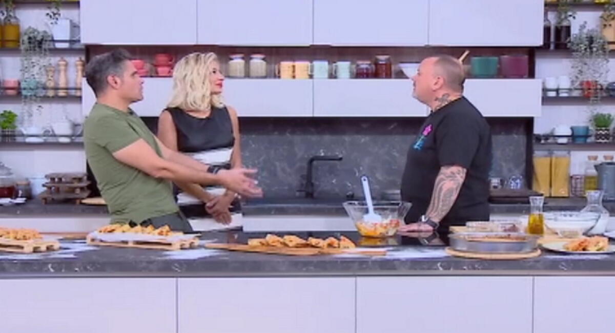 Βέβαια, δευτερόλεπτα αργότερα επέστρεψε και οι τρεις συνεργάτες αντάλλαξαν λόγια εκτίμησης ο ένας για τον άλλον. Λίγα λεπτά πιο μετά, ωστόσο, ο Δημήτρης Σκαρμούτσος ανέφερε χαρακτηριστικά για τη συνταγή: “Ακόμα και το βιβλίο της Αργυρώς να πάρετε και το ανοίξετε θα δείτε ότι είναι το ίδιο”.